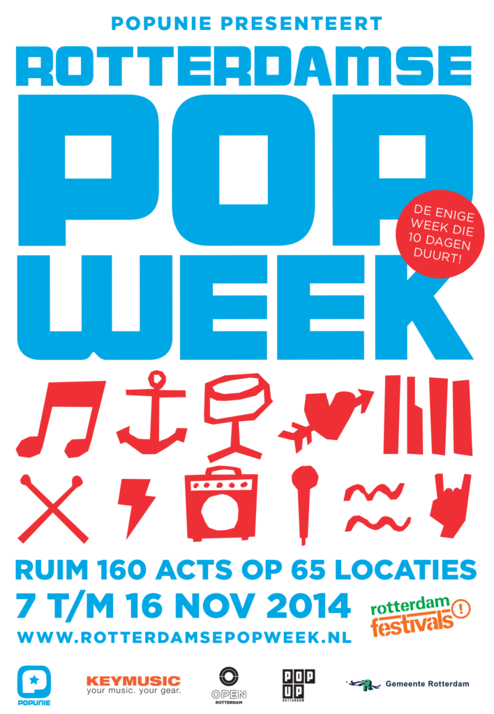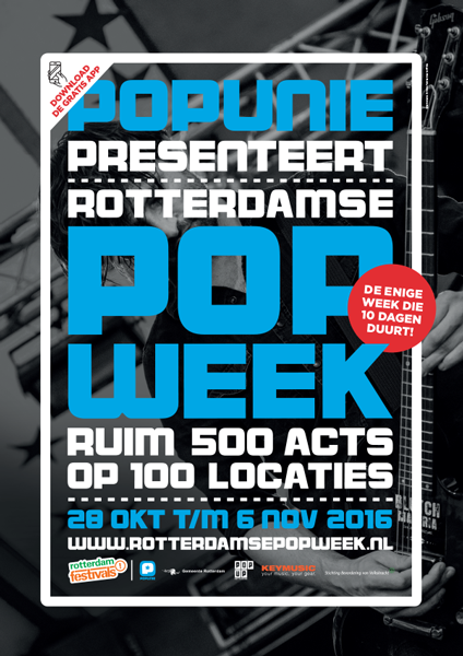 Verwacht een bomvol programma met events die georganiseerd worden door de Rotterdamse popsector en waar de DIY mentaliteit van de stad goed naar voren komt. Voor het volledige en actuele programma van de Rotterdamse Popweek kun je terecht op deze speciale website, die voortdurend geüpdatet wordt.